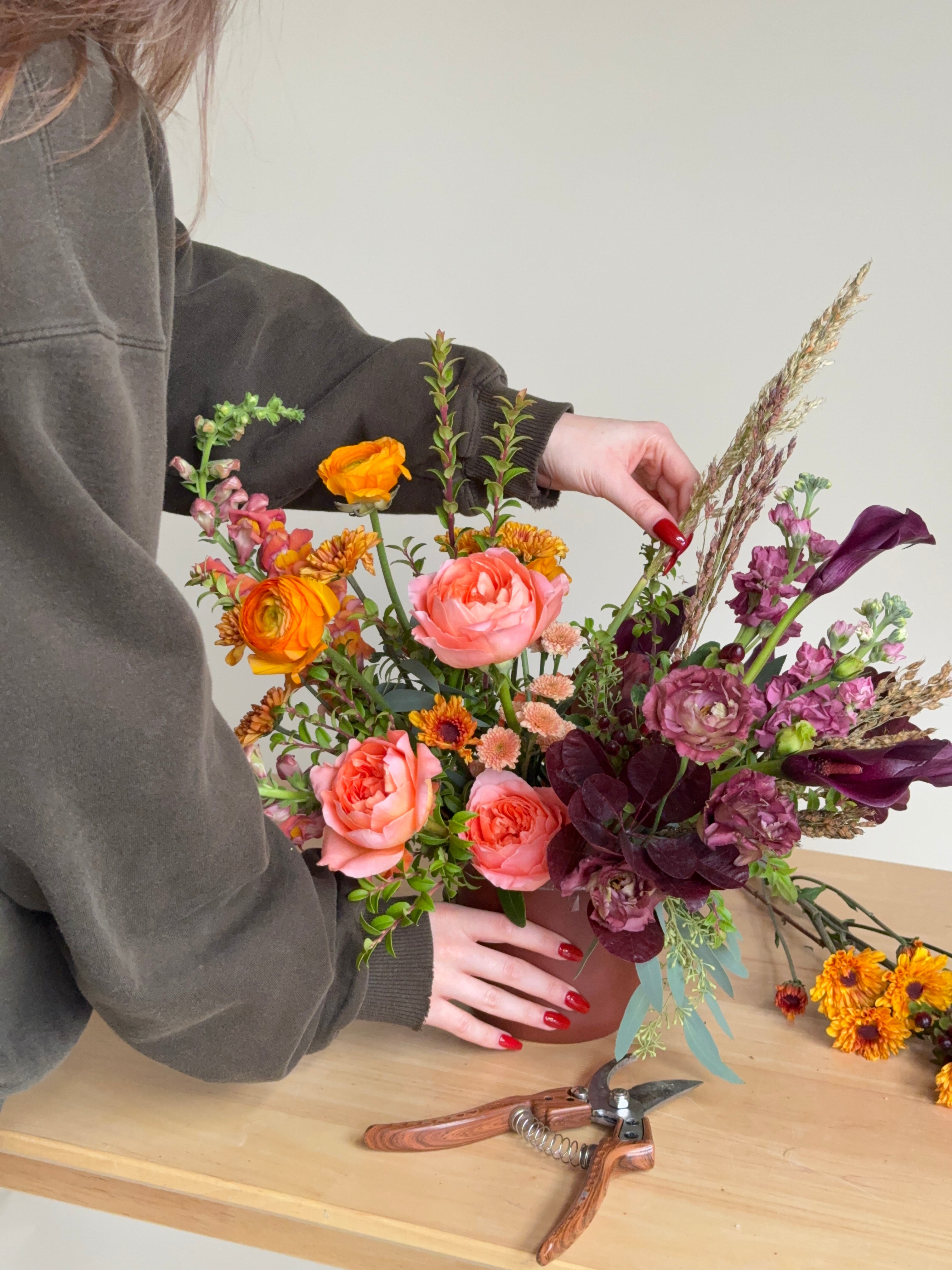 We'll provide all the tools, supplies, and fresh cut flowers needed to build a signature Love Always arrangement + instruction and assistance by a Love Always professional florist. You'll learn the basics of floral design, and leave with a pretty flower arrangement for your Thanksgiving table you're proud to call your own. 🍂